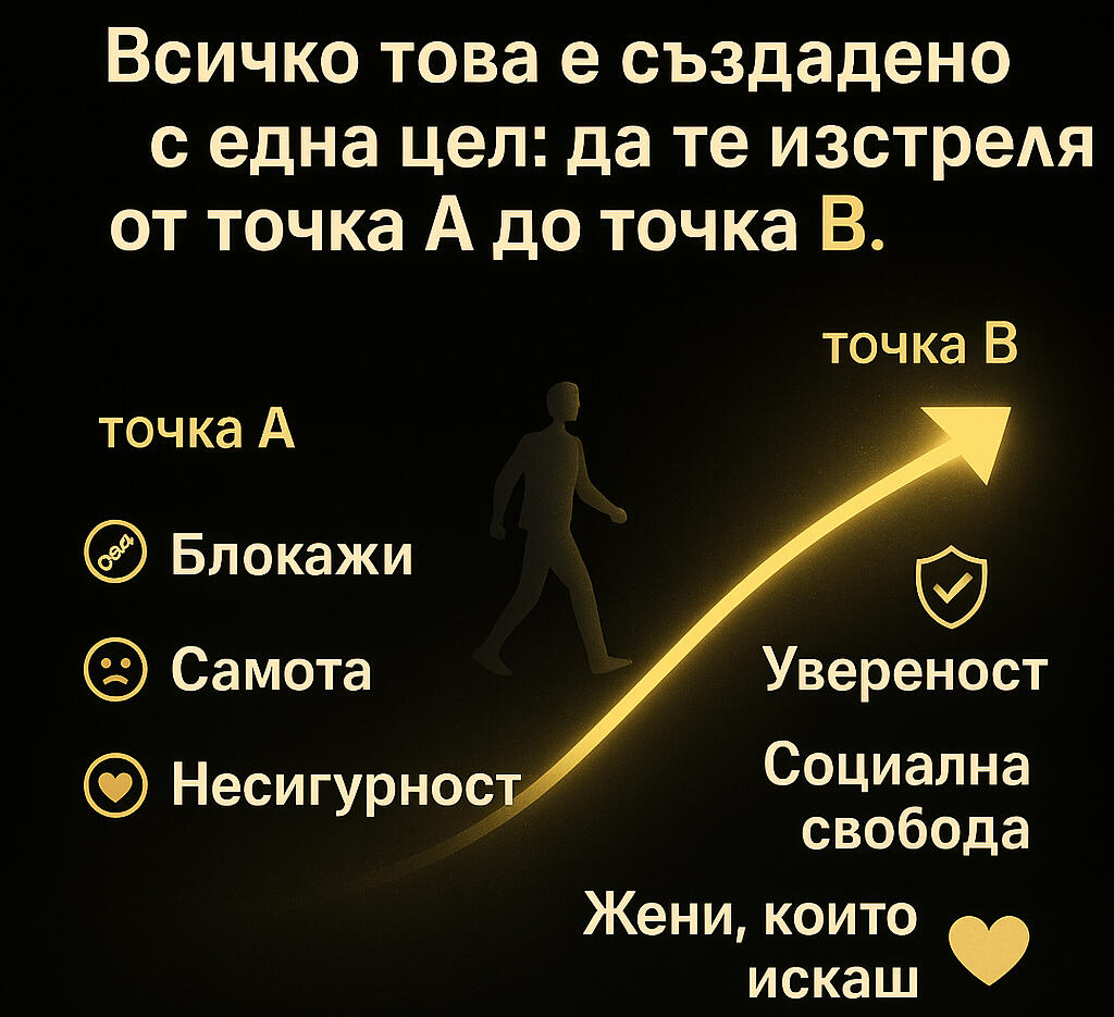 Това не е просто менторска програма — това е най-директният път от мястото, където си сега... до мъжа, който знаеш, че можеш да бъдеш.